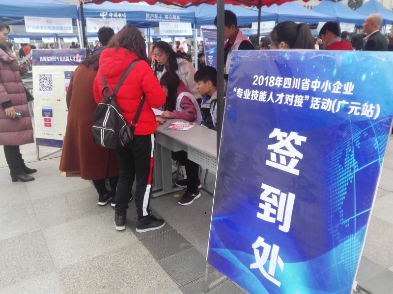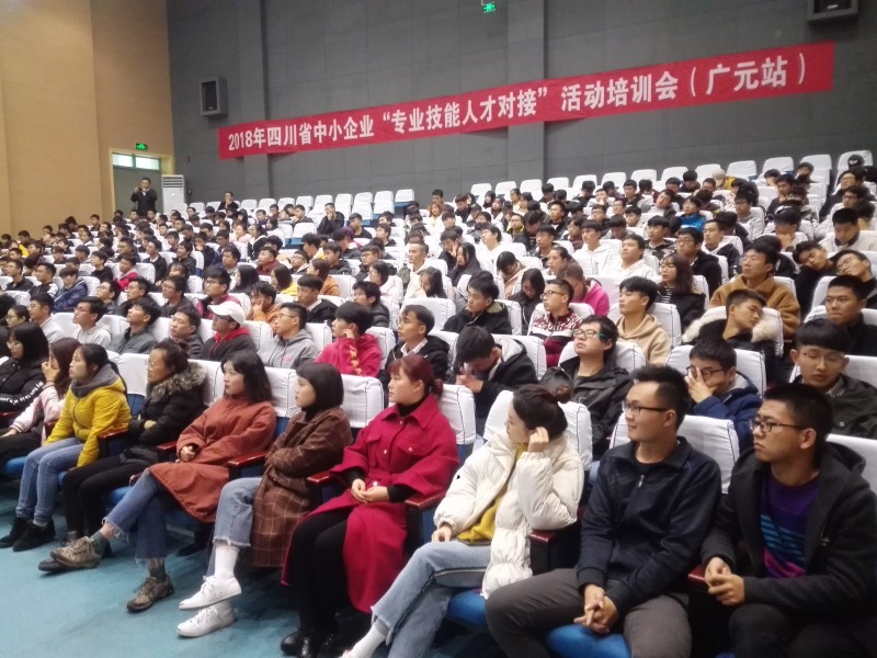 11月29日,2018年四川省中小企業(yè)“專業(yè)技能人才對接”活動首站在廣元舉行?;顒佑伤拇ㄊ〗?jīng)濟和信息化廳主辦,廣元市經(jīng)濟和信息化委員會、中國中小企業(yè)四川網(wǎng)、四川信息職業(yè)技術學院承辦。本次活動分為專業(yè)技能人才對接活動和專業(yè)技能人才培訓會兩部分,活動旨在貫徹落實黨的十九大精神和《中小企業(yè)促進法》,扎實推進大眾創(chuàng)業(yè)、萬眾創(chuàng)新,搭建企業(yè)專業(yè)技能人才交流平臺,提升專業(yè)技能人才能力素質(zhì)。廣元市經(jīng)信委副主任薛開廣主持活動,四川省經(jīng)濟和信息化廳企業(yè)處副處長彭安、四川信息職業(yè)技術學院副院長韓鵬出席活動并致辭。廣元市近百家企業(yè),各技工院校應往屆大中專畢業(yè)生及其他各類社會待就業(yè)專業(yè)技能人員600余人參加活動。