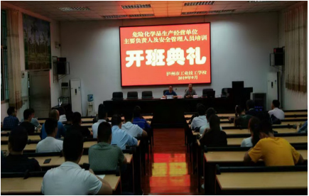 為滿足廣大學員的培訓需求,市服務中心于9月8日在學校階梯教室舉辦了危險化學品生產經營單位主要負責人和安全管理人員培訓班。共計150余名來自瀘州和周邊市縣及四川瀘天化股份有限公司、四川天宇油脂化學有限公司、中海瀝青(四川)有限公司、四川北方硝化棉股份有限公司等各危險化學品生產經營單位的負責人和安全管理人員參加了本次培訓。