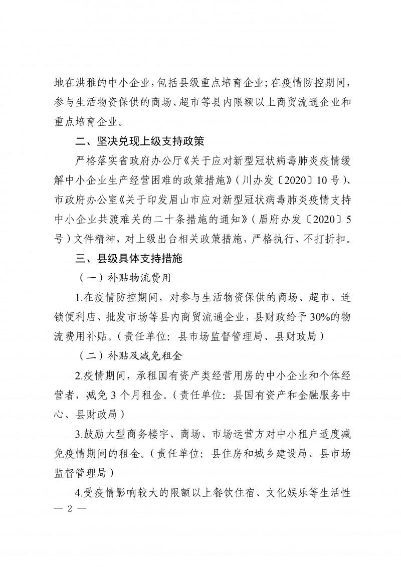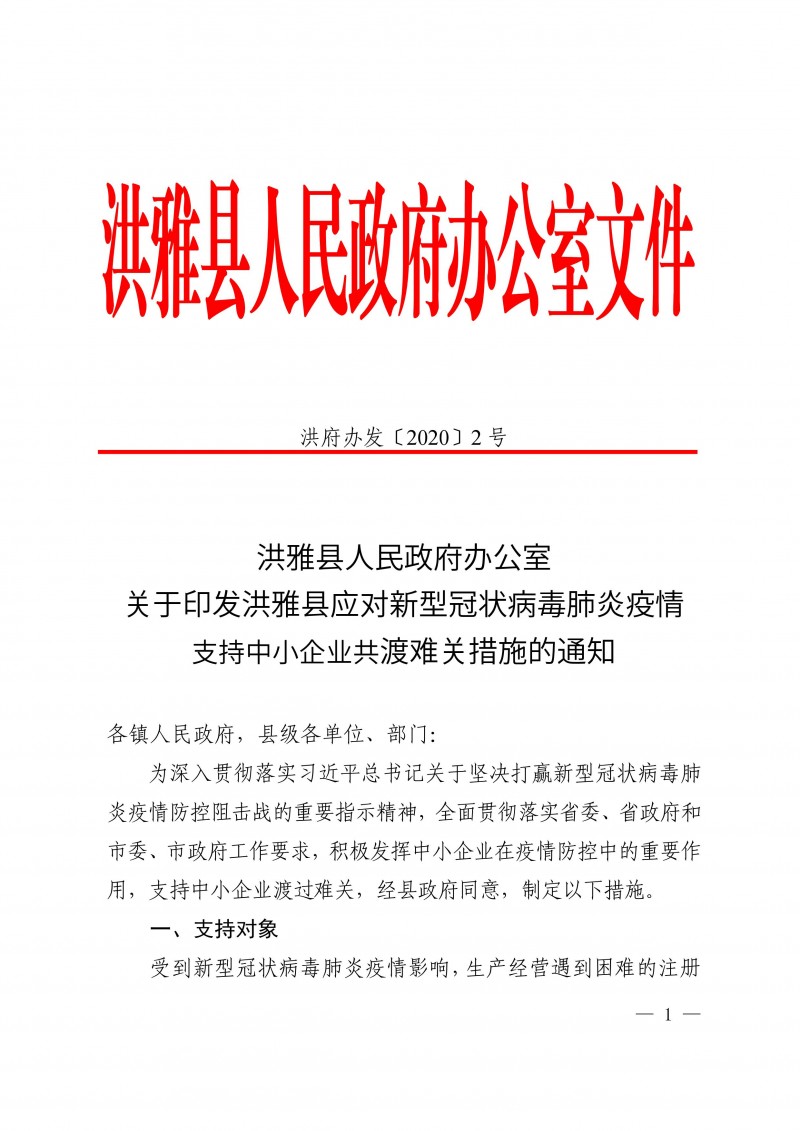 洪雅縣人民政府辦公室 關(guān)于印發(fā)洪雅縣應(yīng)對新型冠狀病毒肺炎疫情 支持中小企業(yè)共渡難關(guān)措施的通知