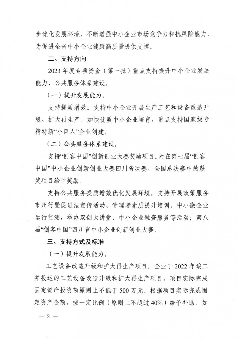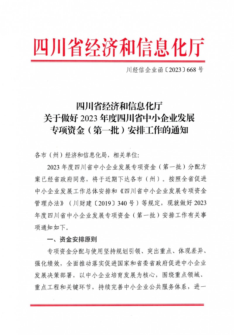 關(guān)于做好2023年度四川省中小企業(yè)發(fā)展 專項(xiàng)資金(第一批)安排工作的通知