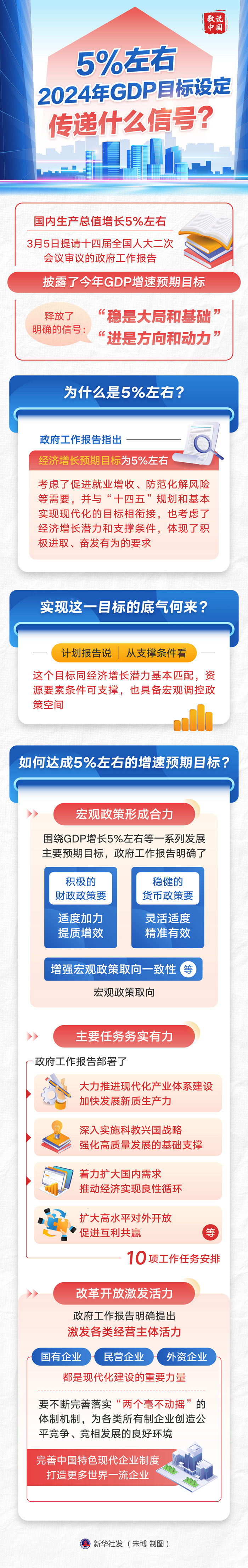政府工作報告指出,經(jīng)濟增長預(yù)期目標為5%左右,考慮了促進就業(yè)增收、防范化解風險等需要,并與“十四五”規(guī)劃和基本實現(xiàn)現(xiàn)代化的目標相銜接,也考慮了經(jīng)濟增長潛力和支撐條件,體現(xiàn)了積極進取、奮發(fā)有為的要求。