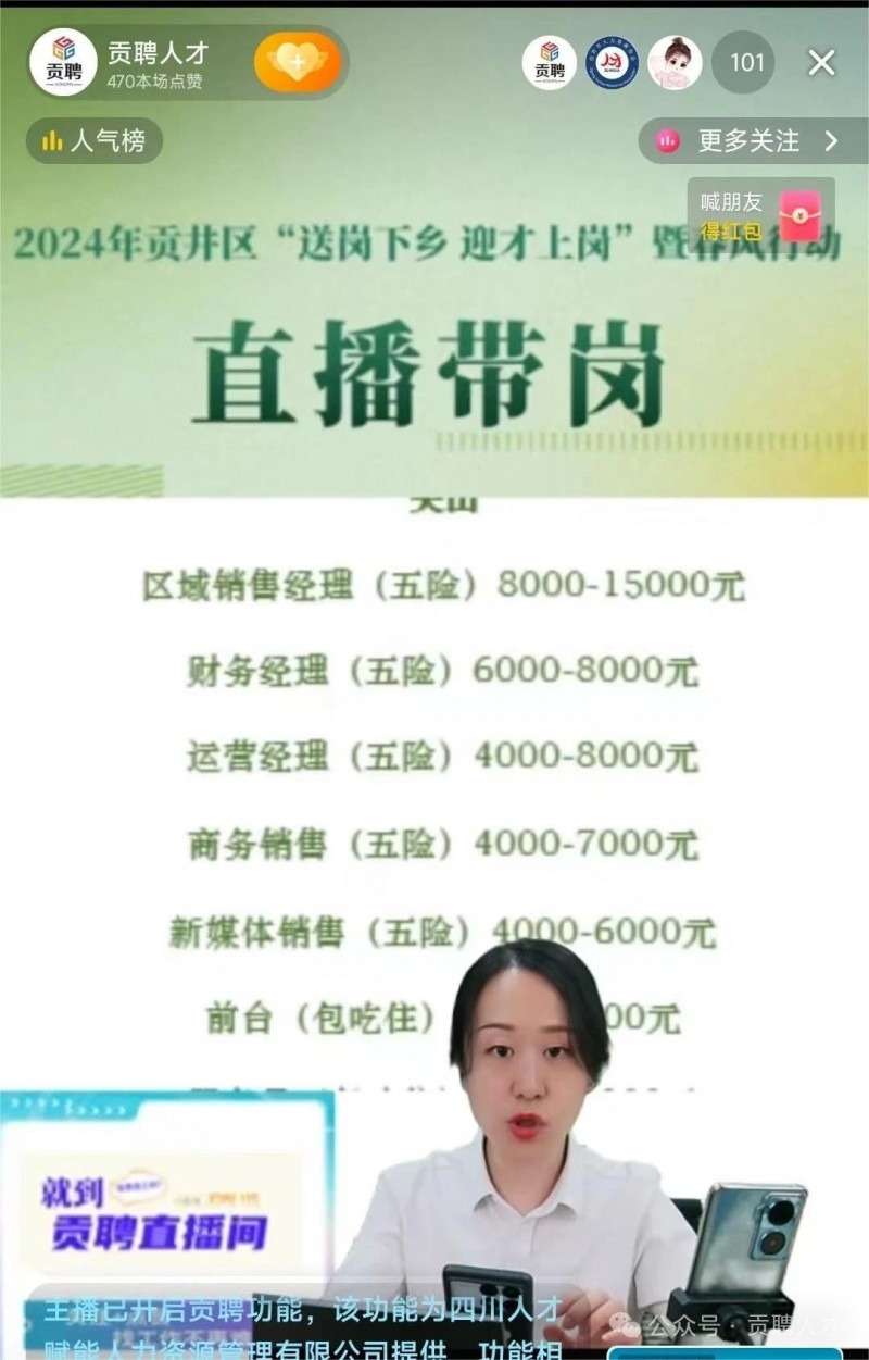 此次“送崗下鄉(xiāng) 迎才上崗”暨春風(fēng)行動網(wǎng)絡(luò)招聘會的成功舉辦,不僅為貢井區(qū)的就業(yè)工作注入了新的動力,也展示了自貢市在促進城鄉(xiāng)就業(yè)方面的積極探索和創(chuàng)新實踐。未來,貢井區(qū)將繼續(xù)加大就業(yè)服務(wù)力度,為更多求職者提供優(yōu)質(zhì)的就業(yè)機會和服務(wù),推動經(jīng)濟社會持續(xù)健康發(fā)展。